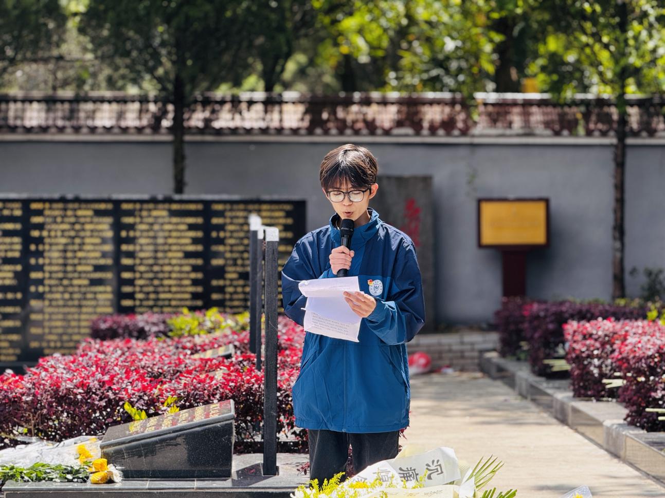 活动庄严肃穆,全体师生整齐列队、神情凝重。伴随着激昂雄壮的中华人民共和国国歌,祭扫仪式正式拉开帷幕,嘹亮的旋律在陵园上空久久回荡,凝聚着全体人员对祖国的赤诚热爱与对先烈的崇高敬意。国歌唱毕,全场低头肃立默哀,在静默中追思革命先烈为民族解放、为人民幸福抛头颅、洒热血的峥嵘岁月,深切缅怀他们的不朽功勋。