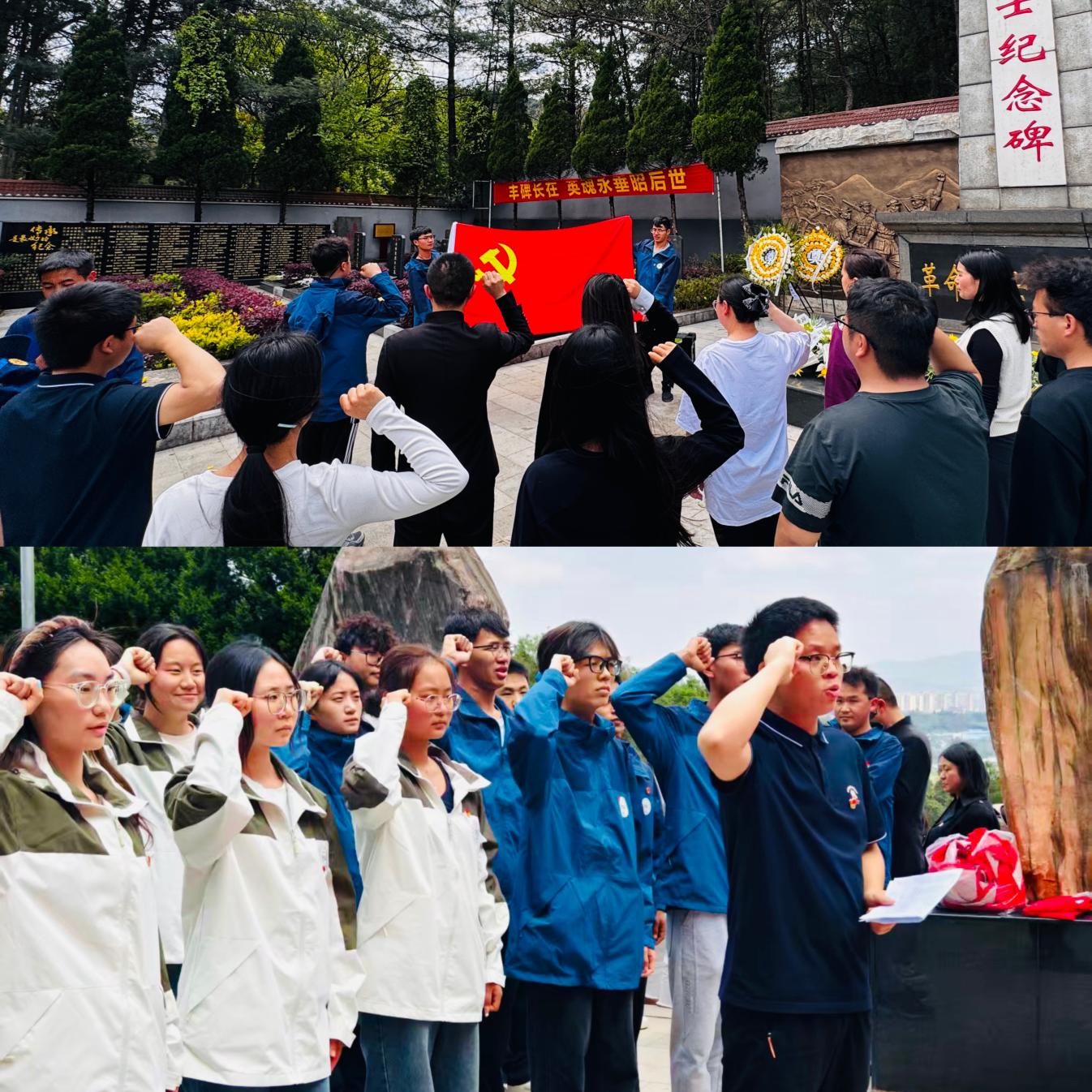 随后,全体党员举起右拳,在魏祖林书记的领誓下重温入党誓词,铿锵有力的誓言久久回荡,彰显着党员们牢记初心使命、传承先烈精神的坚定信念。学生代表在郭安剑老师的带领下重温入团誓词,誓言在陵园上空回荡,铿锵有力,掷地有声。那是青春的承诺,更是使命的担当。